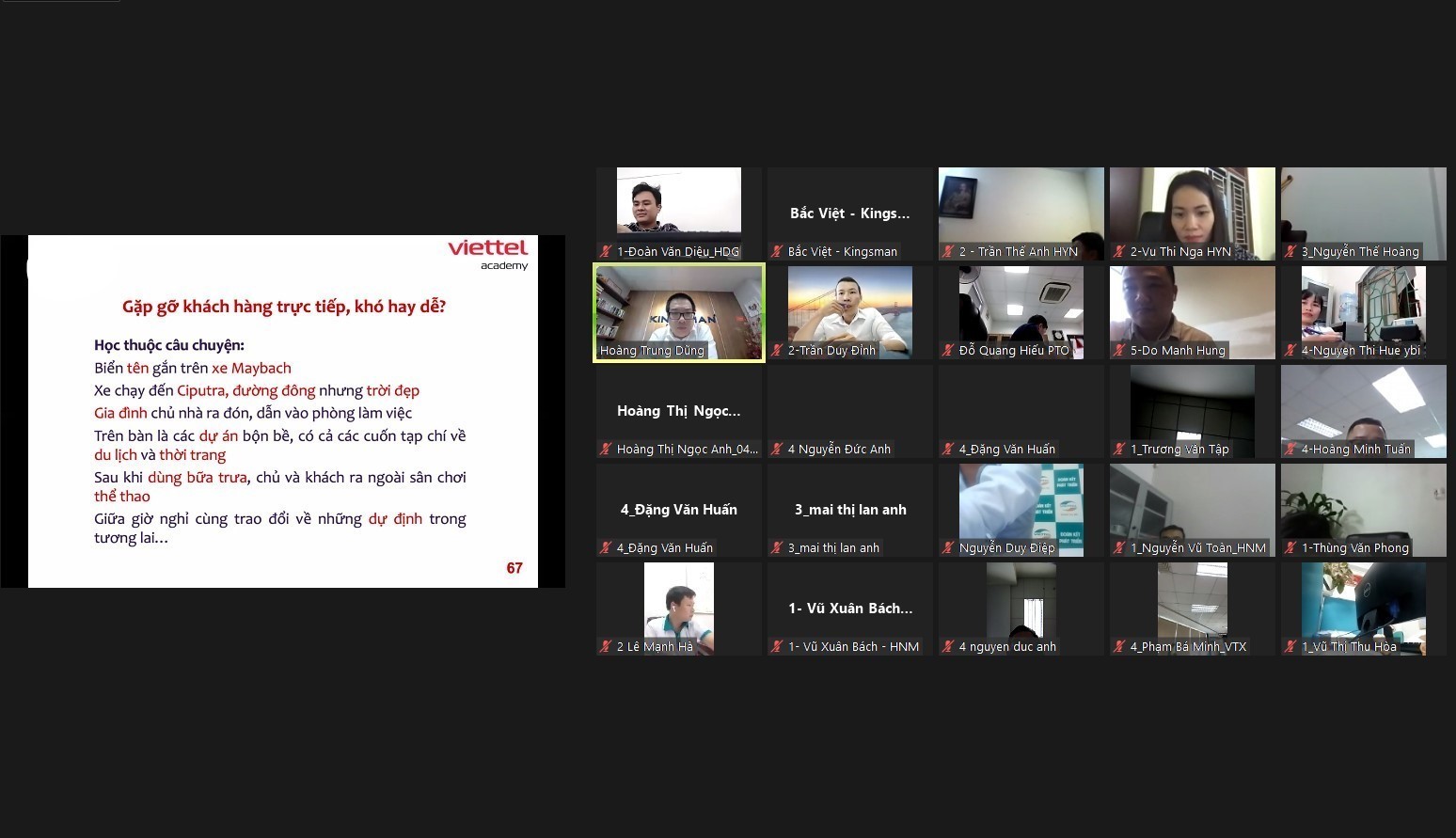 Cùng với tốc độ phát triển đó, Viettel cũng là tập đoàn luôn chú trọng tới sự phát triển đội ngũ cán bộ nhân viên và thường xuyên tổ chức các khóa đào tạo chuyên sâu. Khóa “Kỹ năng xây dựng và quản lý mối quan hệ” cũng là một trong những khóa học quan trọng Tập đoàn Công nghiệp – Viễn thông Quân đội (Viettel) phối hợp cùng Kingsman tổ chức.