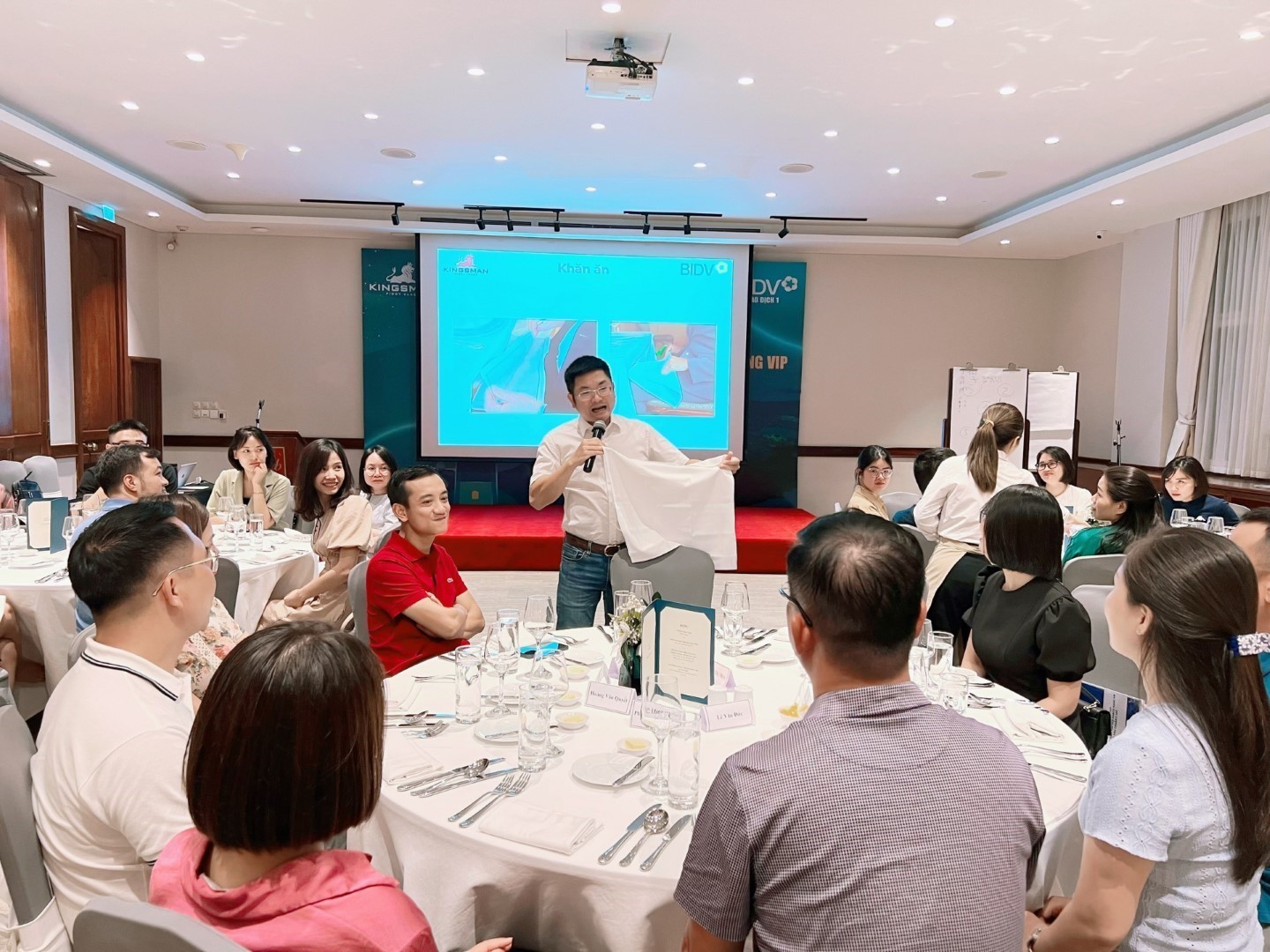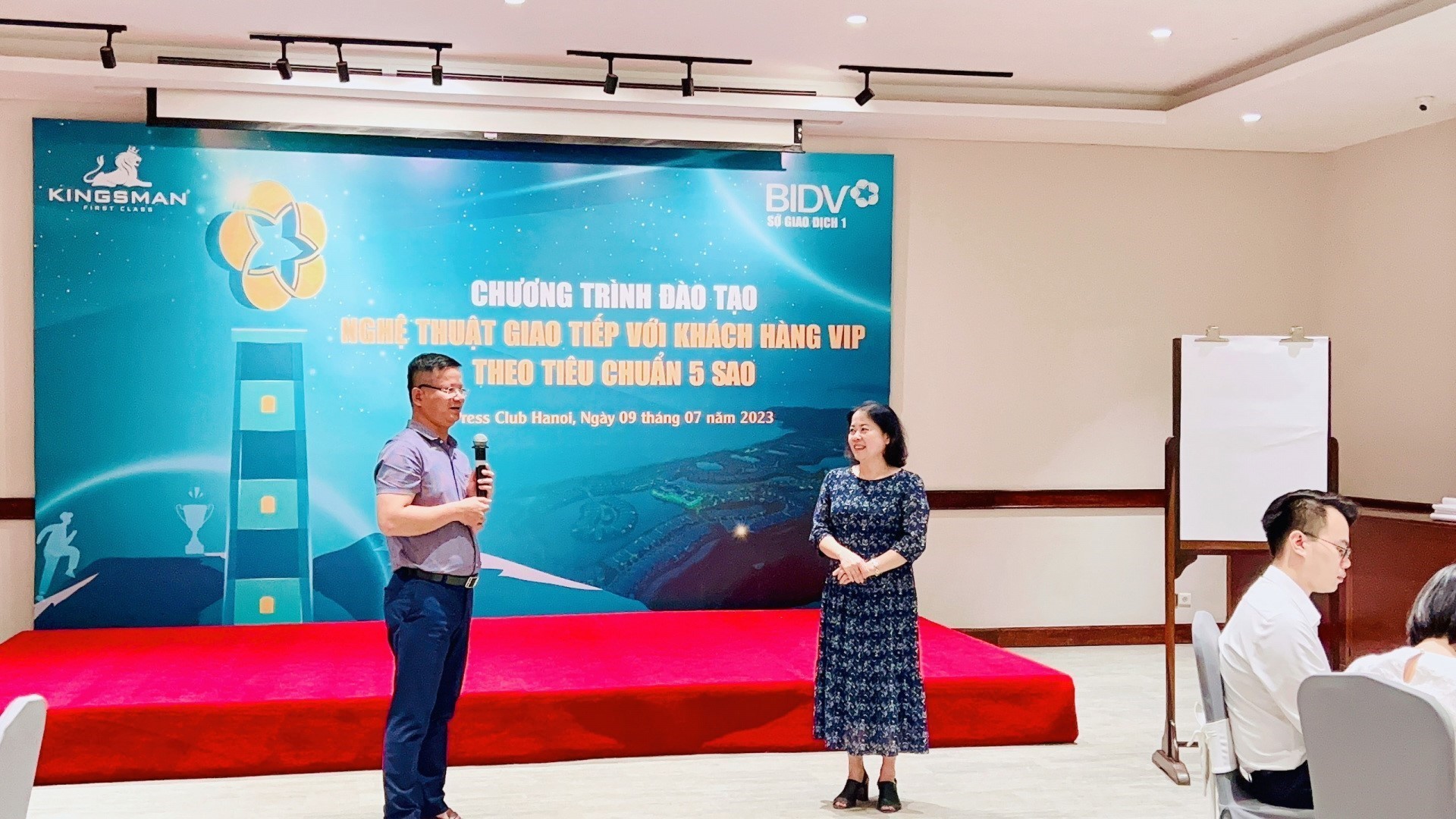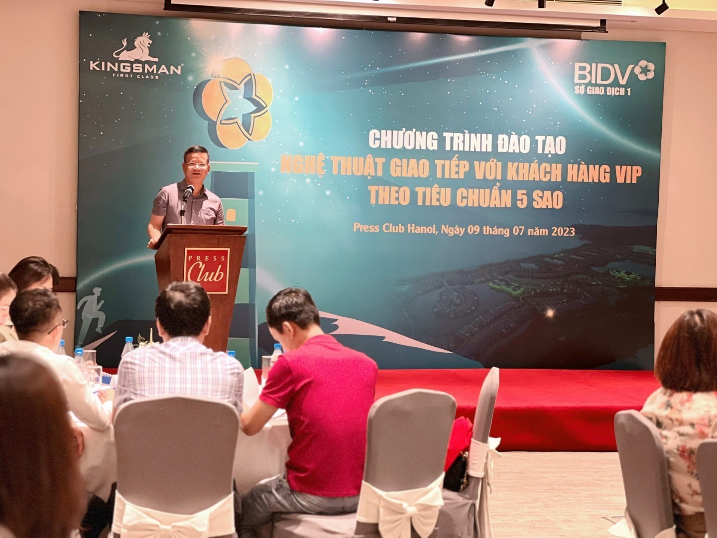 Hiểu được tầm quan trọng đó, vừa qua, ngày 09/07/2023 tại Press Club Hanoi (số 12 Lý Đạo Thành, Hoàn Kiếm, Hà Nội Hà Nội) Ngân hàng BIDV – chi nhánh sở Giao dịch 1 đã phối hợp cùng Học viện Kingsman tổ chức chương trình đào tạo “Nghệ thuật giao tiếp với khách hàng VIP theo tiêu chuẩn 5 sao” dành cho đội ngũ quản lý và cán bộ BIDV Chi nhánh Sở giao dịch 1.