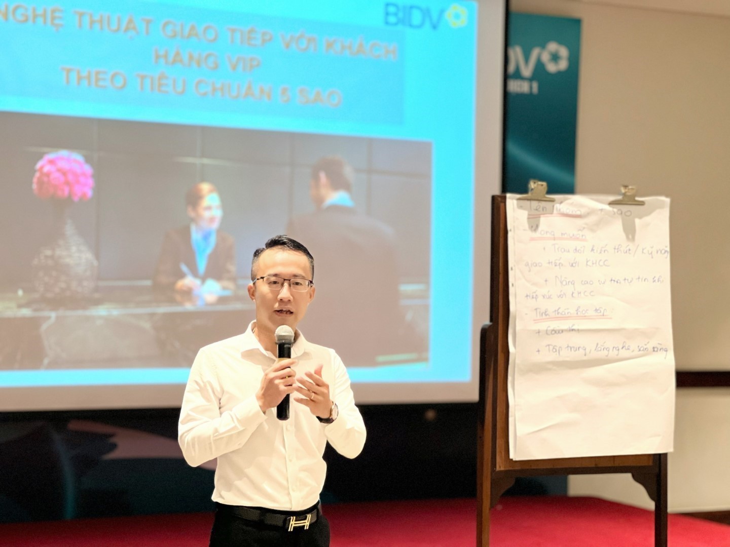 Chương trình đào tạo “Nghệ thuật giao tiếp với khách hàng VIP theo tiêu chuẩn 5 sao” nhằm mục tiêu nâng cao năng lực và kiến thức của cá nhân để đáp ứng những yêu cầu công việc ngày càng cao trong môi trường kinh doanh đa dạng và thay đổi nhanh chóng. Qua chương trình này, các học viên được cung cấp những công cụ, kỹ năng và kiến thức cần thiết để thành công trong quá trình giao tiếp với khách hàng VIP để từ đó đóng góp tích cực vào sự phát triển của BIDV Chi nhánh Sở giao dịch 1.