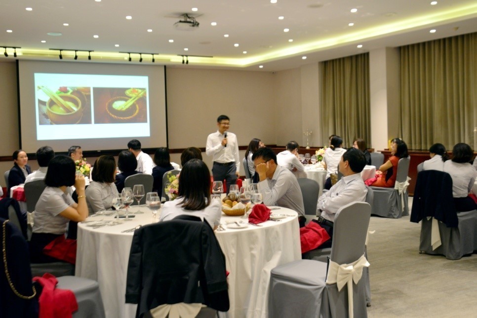 Vừa ôn lại kiến thức buổi sáng, các CBNV vừa có dịp thực hành các nghi thức và tận hưởng bữa tối sang trọng mang đẳng cấp của một bữa tiệc châu Âu 5 sao.