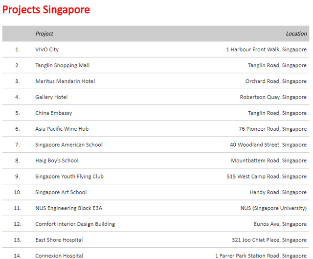 Một số dự án của Kova tại Singapore.